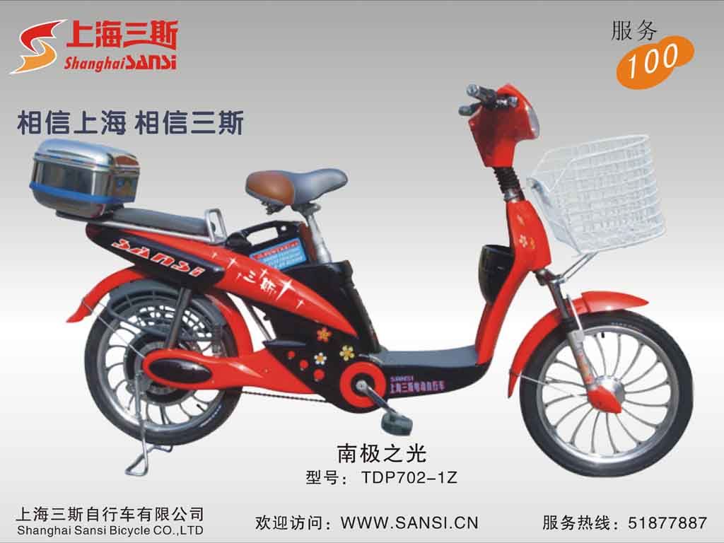 This electric bicycle is designed for city use and features a red and black color scheme. It includes a front basket and rear storage compartment for added convenience.